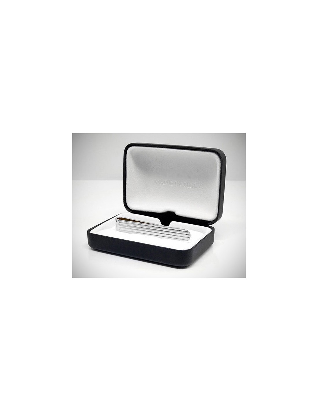 Fermacravatte a strisce incise, un accessorio che aggiunge un tocco di stile e tiene nella giusta posizione la tua cravatta. Immancabile in qualsiasi guardaroba.