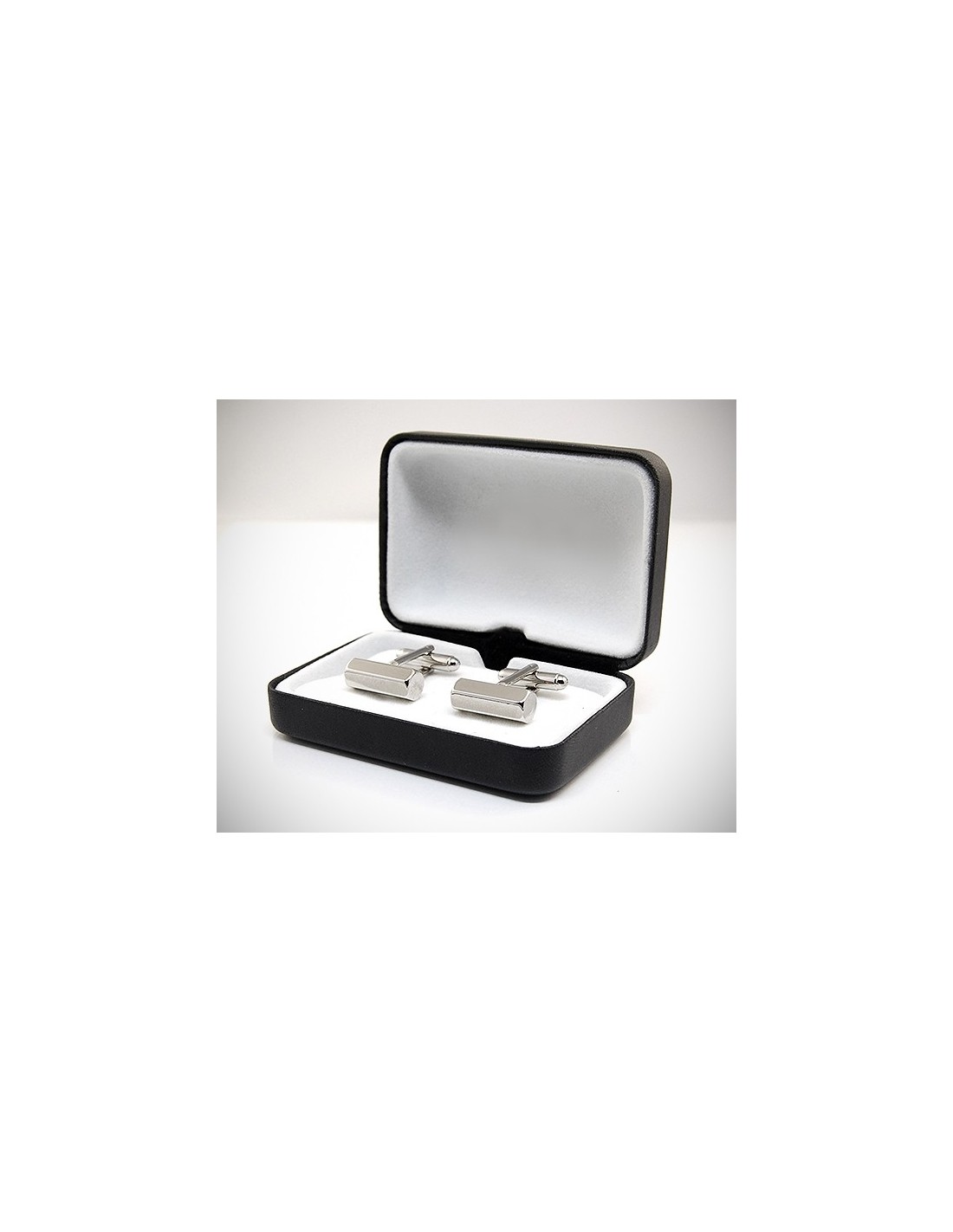 - elegante scatola rigida in eco-pelle con apertura a scatto e cuscinetto in velluto bianco