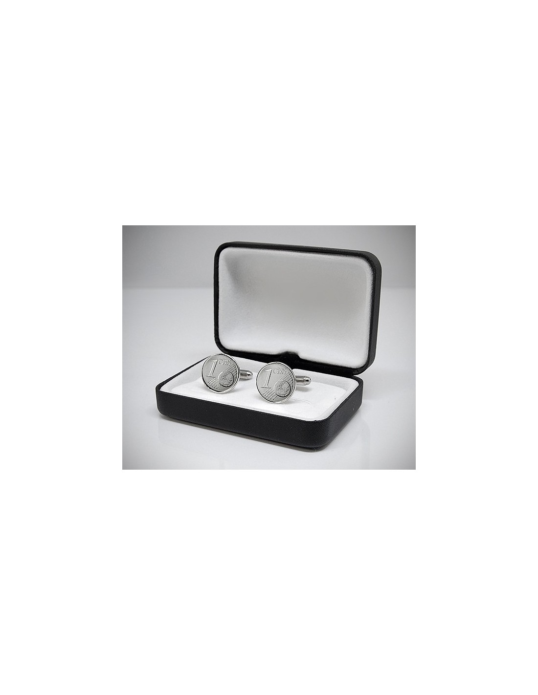 Gemelli per camicia da polso uomo in acciaio brillante con Centesimo di euro, con confezione regalo.
