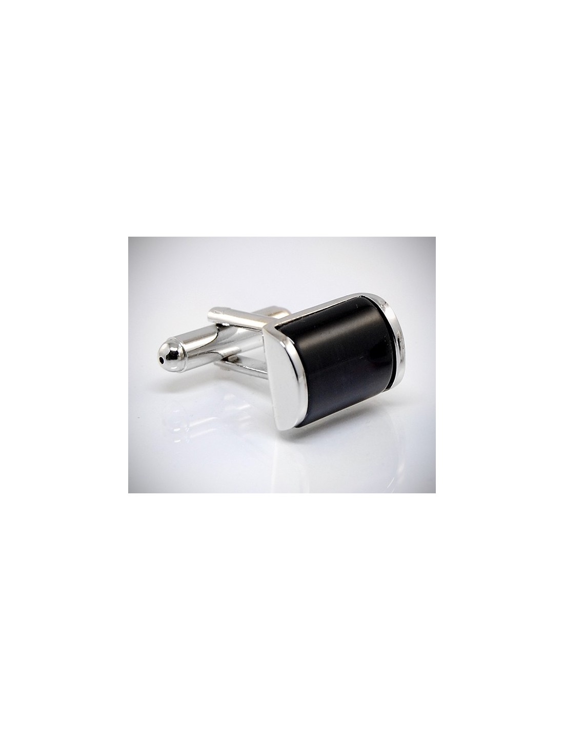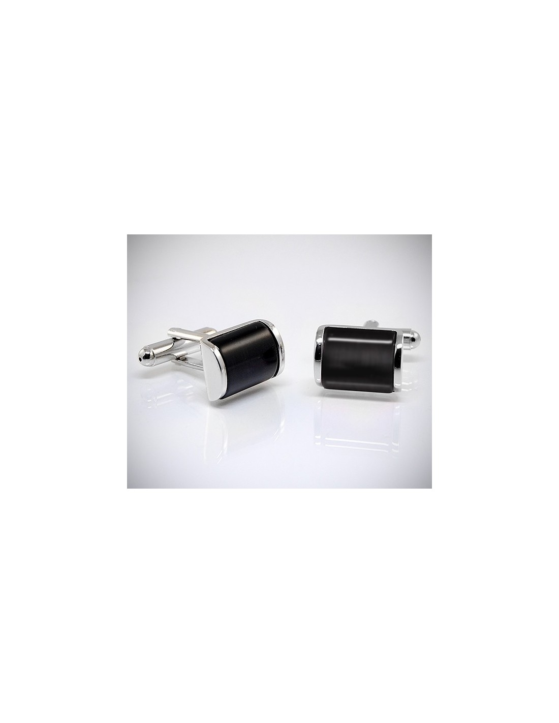 Gemelli per camicia con raffinata pietra bombata di colore nero racchiusa ai 2 lati da una parte metallica che conferisce luminosità.