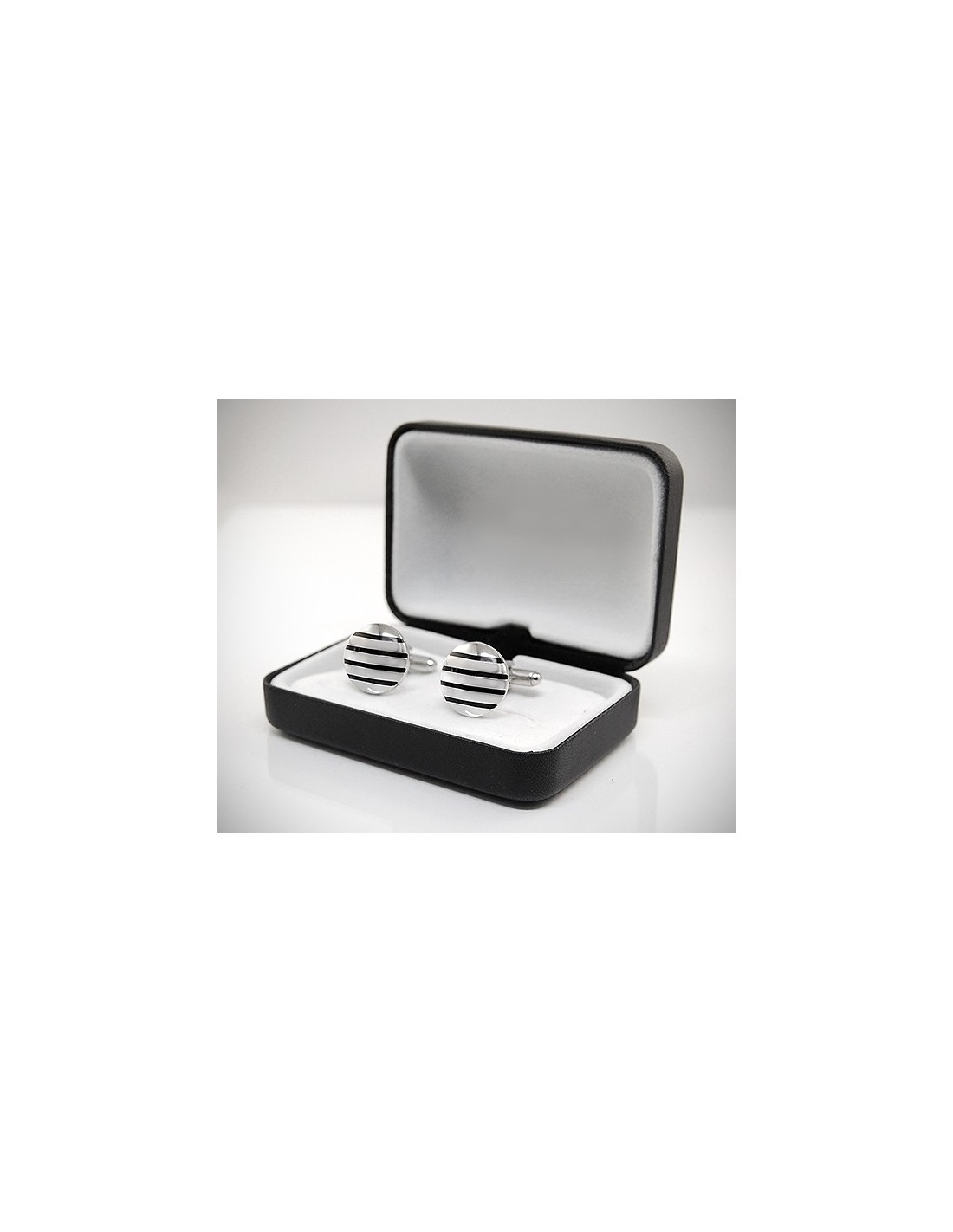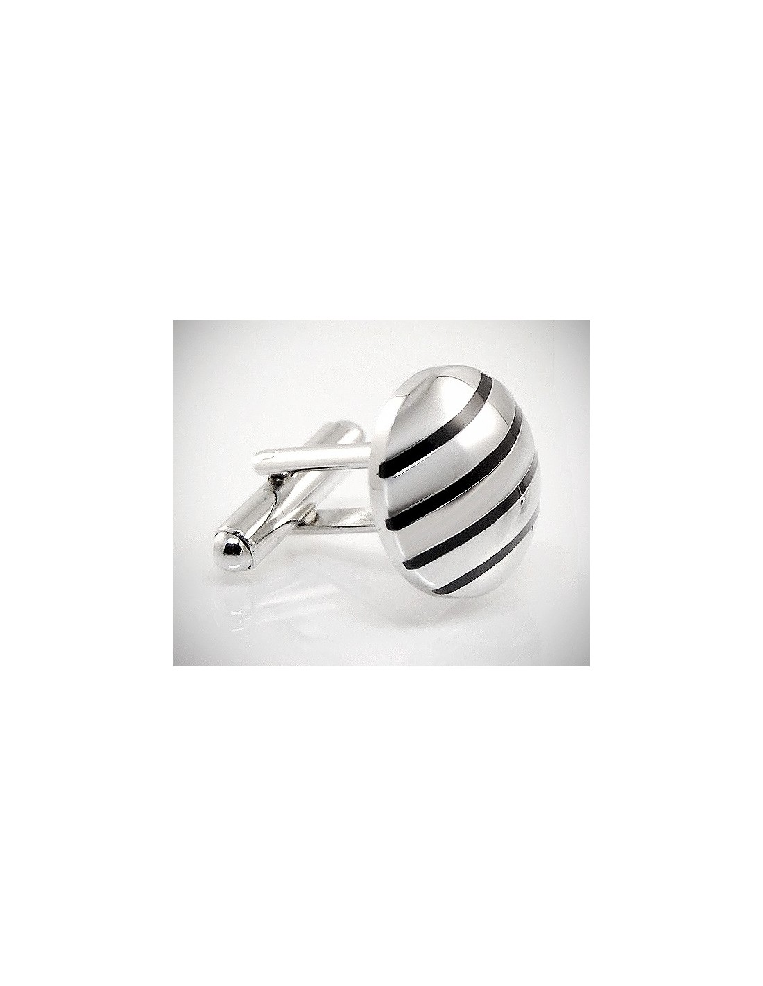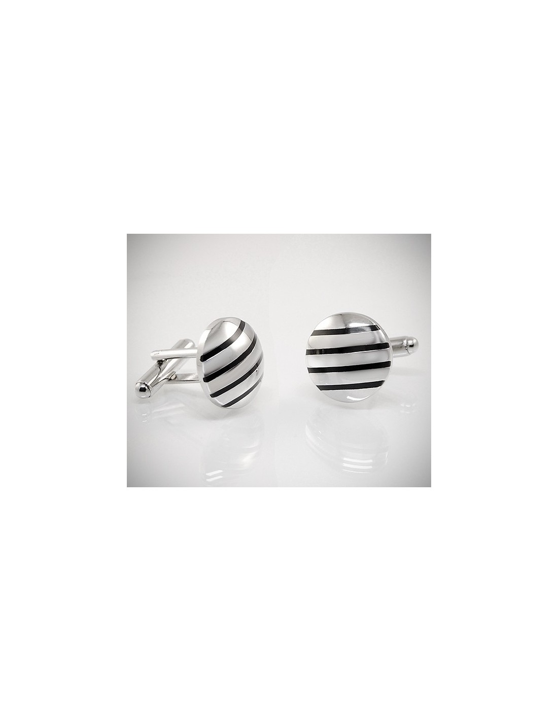 Gemelli per camicia di forma tonda bombata con fini smaltature artigianali di colore nero per alternare la lucentezza della finitura. Made in Italy